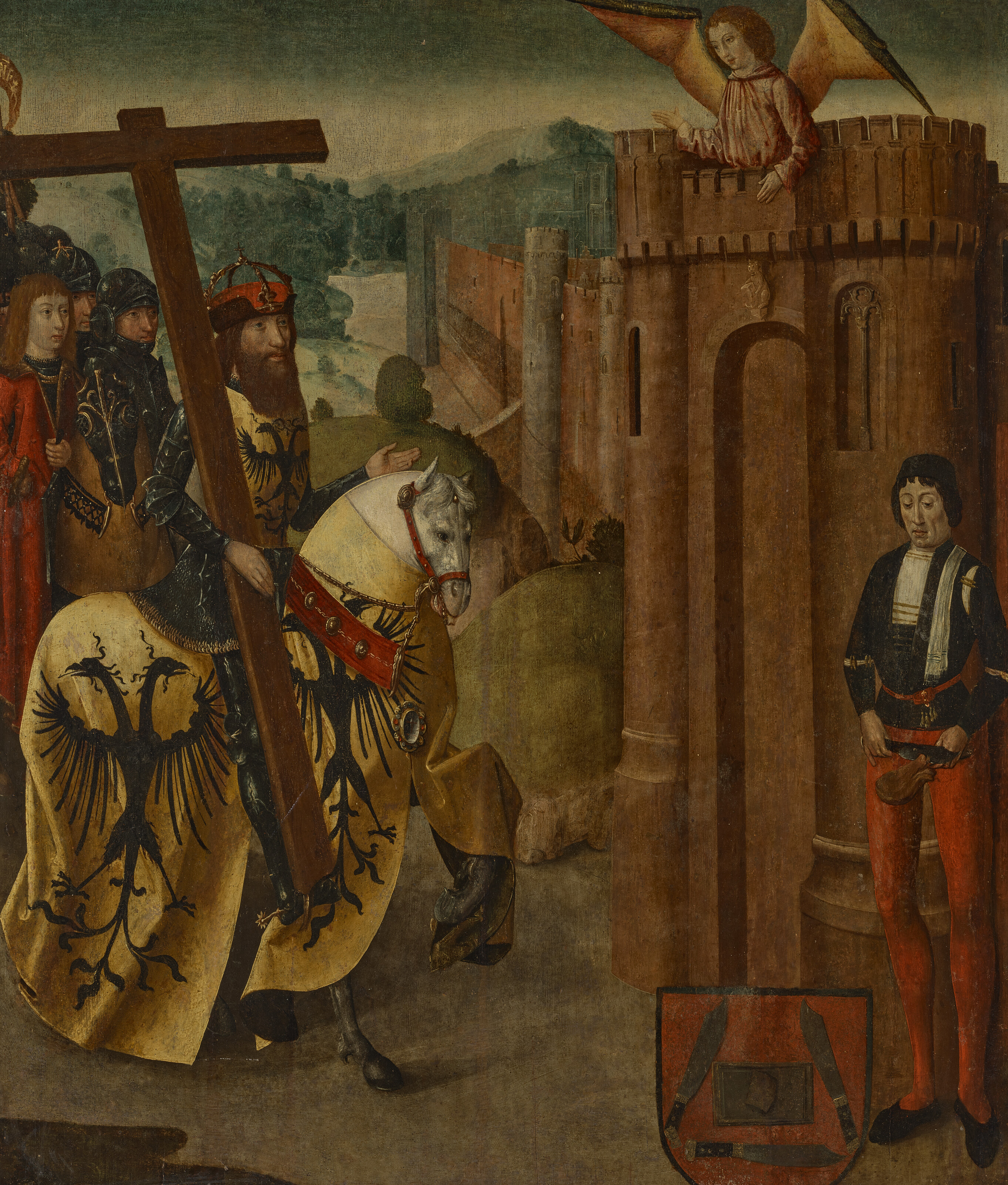 | The Emperor Heraclius bearing the True Cross denied entry to Jerusalem by an angel | |
