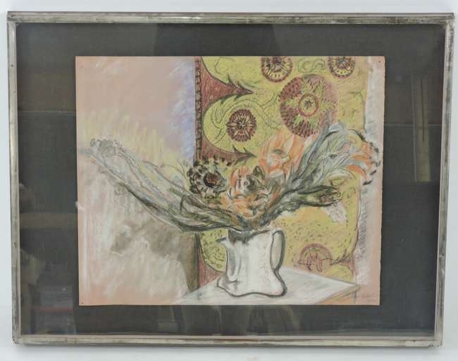 STILL LIFE OF A VASE OF FLOWERS, WITH A HANGING CLOTH