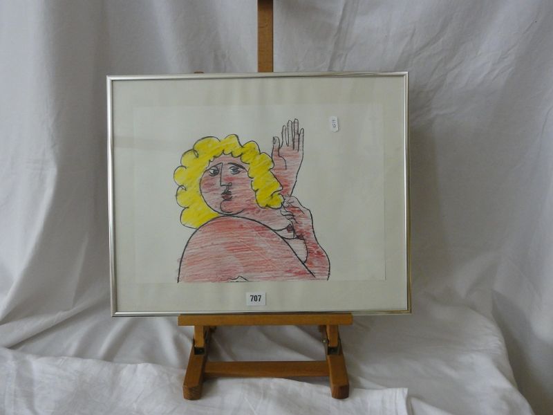A bust length portrait of a nude female