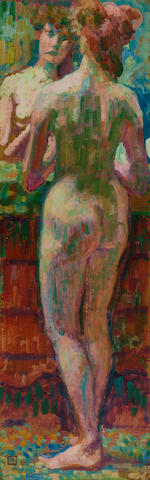 Nu debout de dos, devant la glace, regardant vers la droite