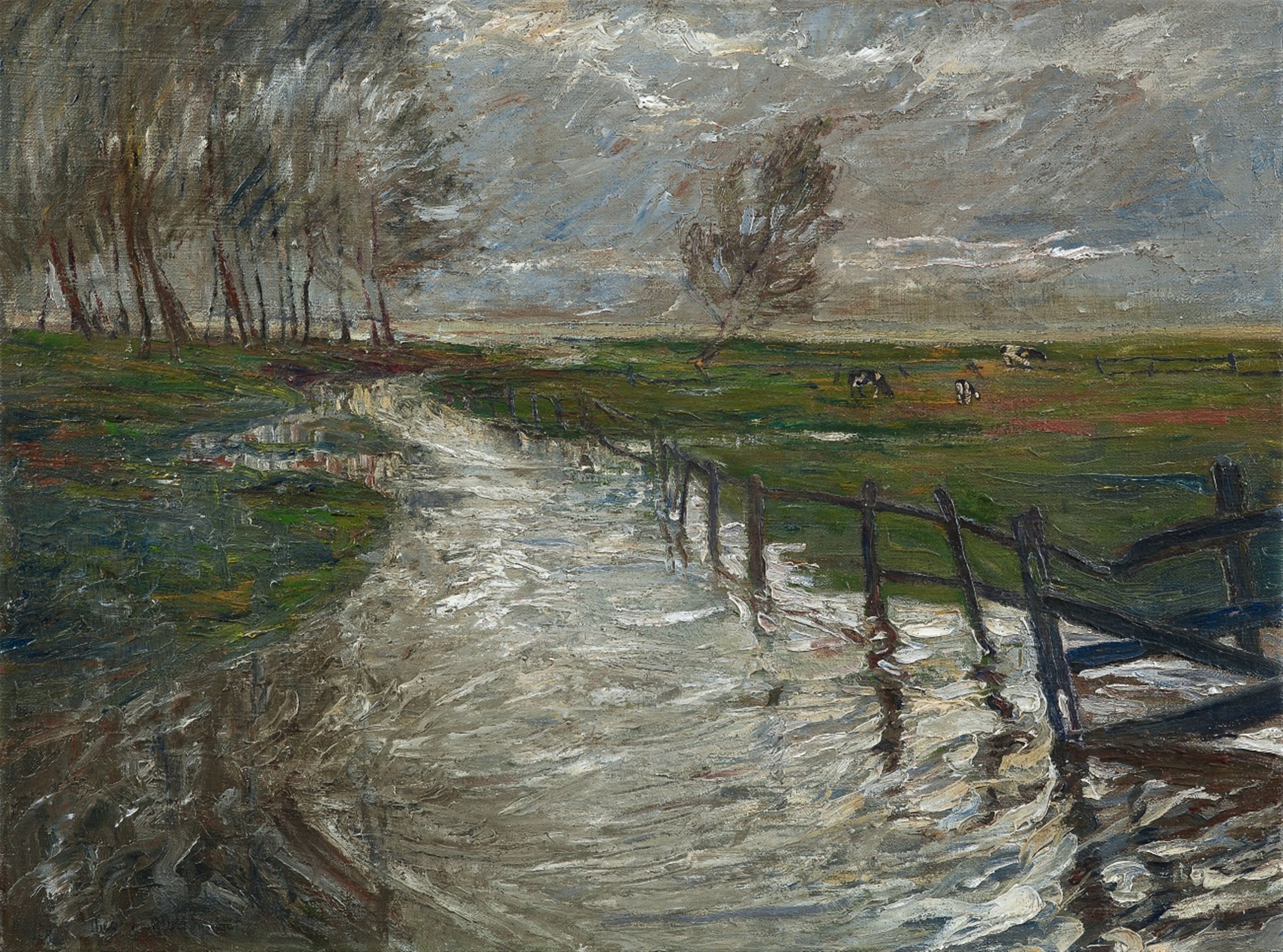 Luchlandschaft (Wustrov - Langen). Verso: Kühe auf der Weide