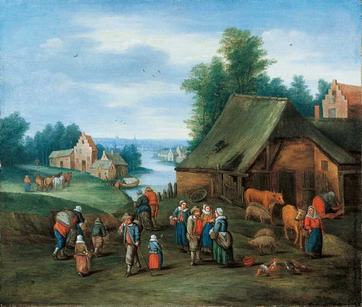 FLUSSLANDSCHAFT MIT GEHÖFT UND BAUERN