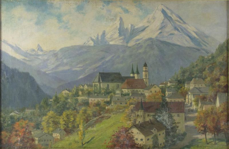 Alpenlandschaft im Herbst mit Kirchdorf.