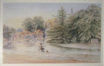 Village scene, Amwell with the monument of Sir Hugh Middleton