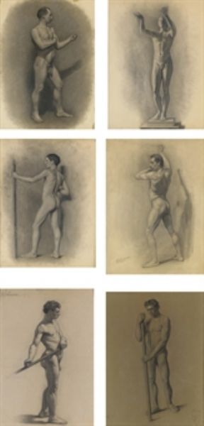 | Charcoal white chalk and pencil on paper laid down on board | |