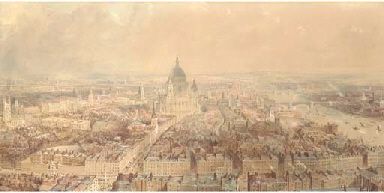 | View of London from the steeple of St Bride's Church, Fleet Street looking towards St Paul's Cathedral | |