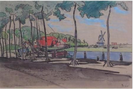 DUTCH CANAL SCENE WITH BARGES