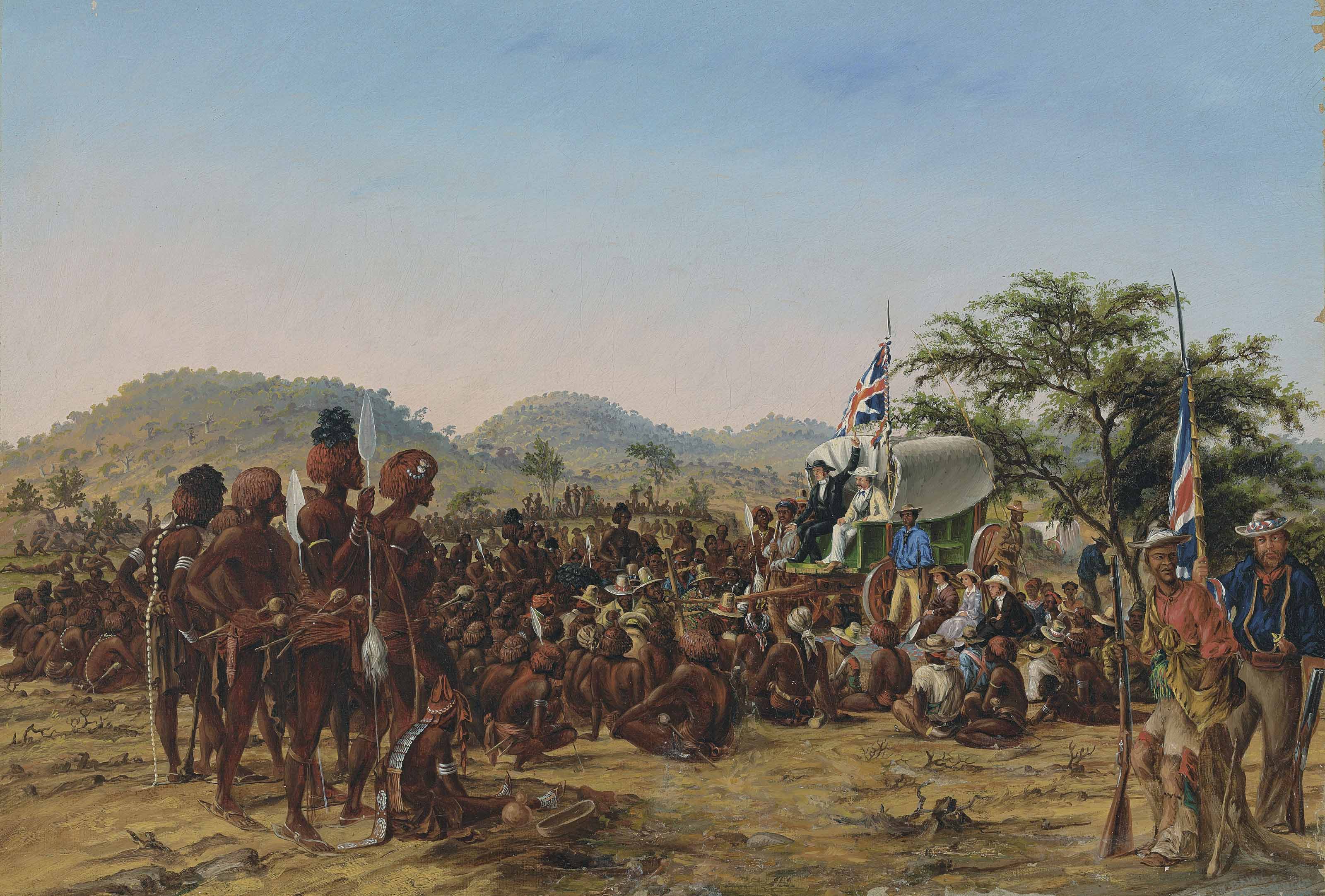 The Reved. C.H. Hahn, addressing the Damara Commando mustered at Dabbie Choup, under C.J. Andersson and F. Green, to attack the Namaqua Hottentots under Jan Jonker. Monday June 6th, 1864 | |