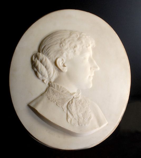 | portrait of a pretty young woman wearing a lace collar and with her hair in a bun | |