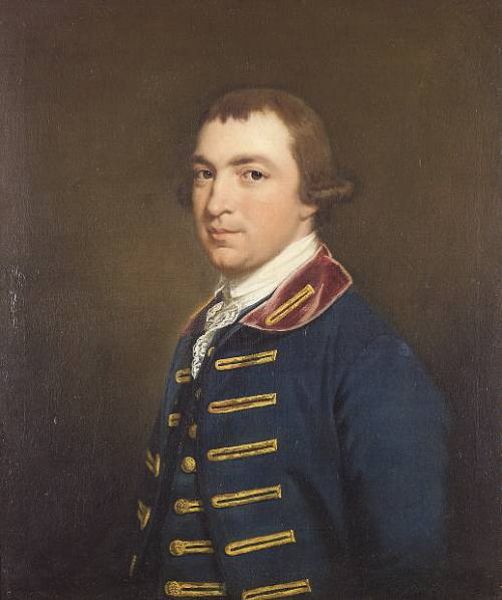 Portrait of E.B Napier, half-length, in a dark blue coat with a scarlet collar