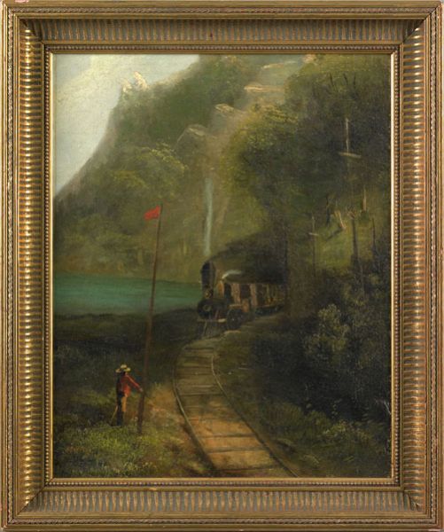 Hudson River landscape with train and figure
