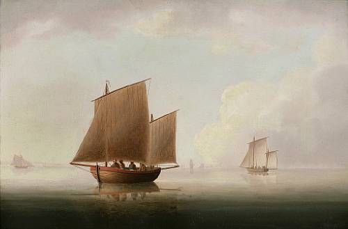 | Becalmed with a British lugger in the foreground and other shipping in the distance | |