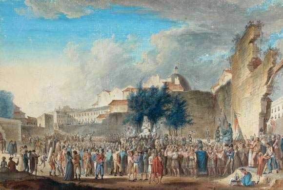Fête de l'Unité, le 10 août 1793, à la fontaine de la Régénération dans les ruines de la Bastille.