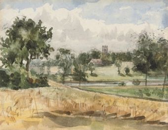 | A view across a cornfield, a church in the distance (illustrated); and The churchyard | |