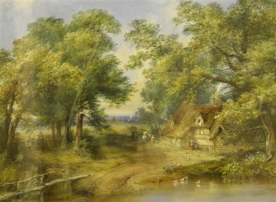 Country lane with cottage and figures