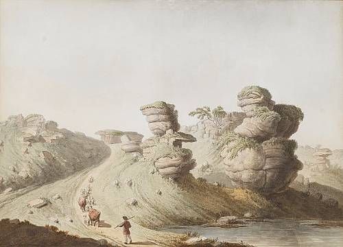Brimham Crags, Yorkshire; A herdsman and his flock in Brimham Crags, Yorkshire
