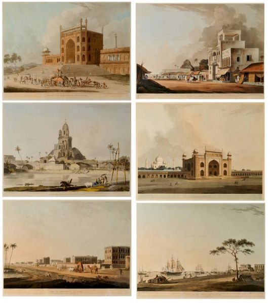 | ORIENTAL SCENERY: EASTERN GATE OF THE JUMMAH MUSJID AT DELHI; VIEW TAKEN ON THE ESPLANADE, CALCUTTA; PART OF CHERIGHEE, CALCUTTA | |