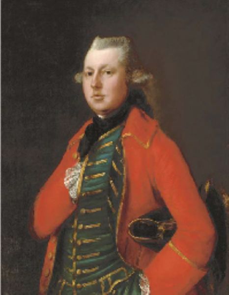 | Portrait of Mr Coke, of Brookhill Hall, half-length, in a red coat and blue waistcoat with gold embroidery, a tricorn hat under | |