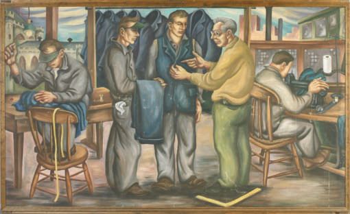MURAL OF WORKERS IN A PRISON TAILOR’S SHOP