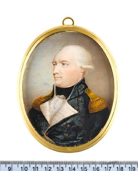 | Captain Edward Hall Campbell RN, wearing Naval uniform, blue coat with white facings and gold epaulettes, white waistcoat, frill | |