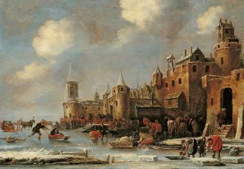 EISVERGNÜGEN VOR EINER STADTMAUER.