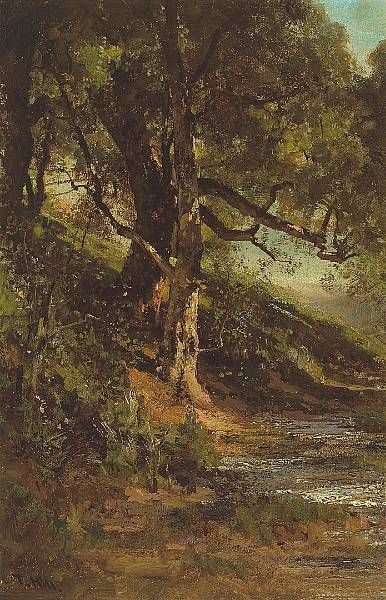 Sun-dappled Tree beside a Quiet Brook