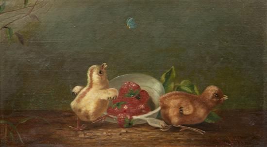 Two Chicks, Butterfly and a Bowl of Strawberries