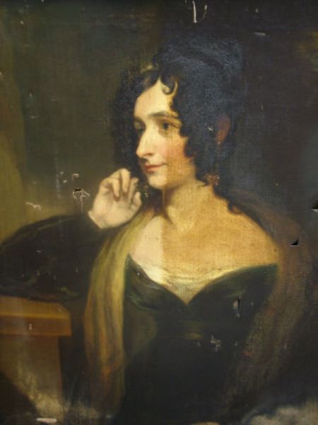 Portrait of a lady, standing half-length turned to the right in a black dress