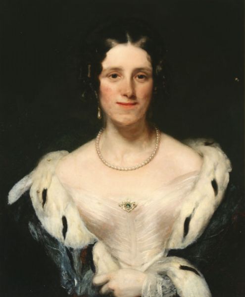 Portrait of a Lady Wearing Pearls and an Ermine Lined Blue Cape