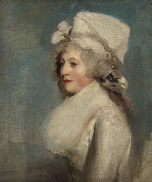 Portrait of Judith Noel, Lady Milbanke, half-length, in a white dress and bonnet