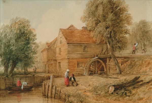 Figures by a watermill
