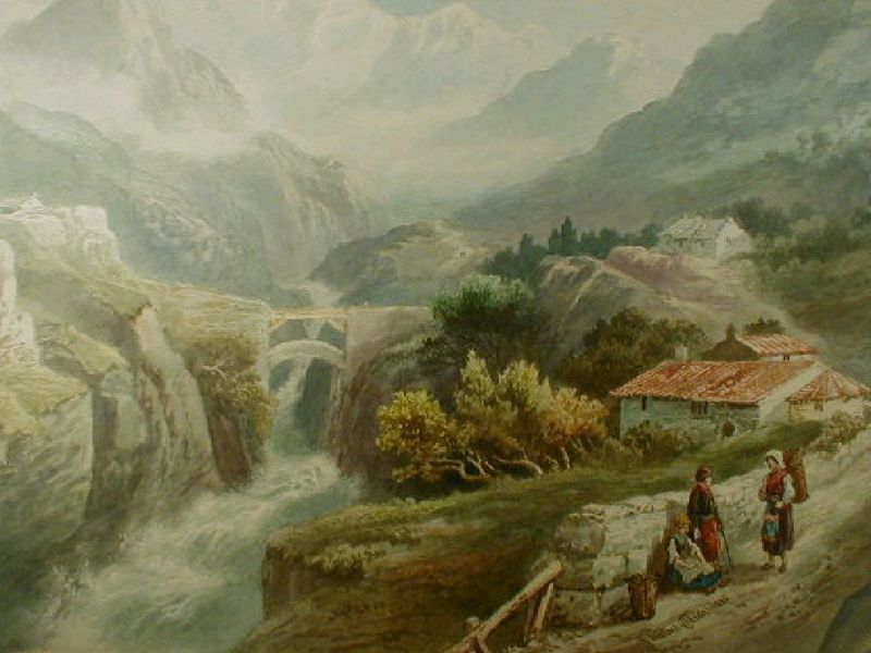 | A mountainous Continental landscape depicting the double bridge at Sera, | |