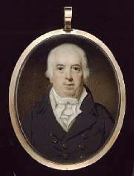 | A Gentleman, full-face, wearing dark brown coat, cream waistcoat and tied white cravat | |