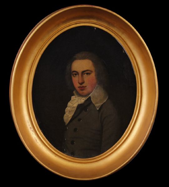 Portrait of a Gentleman,wearing a white stock and grey buttoned jacket