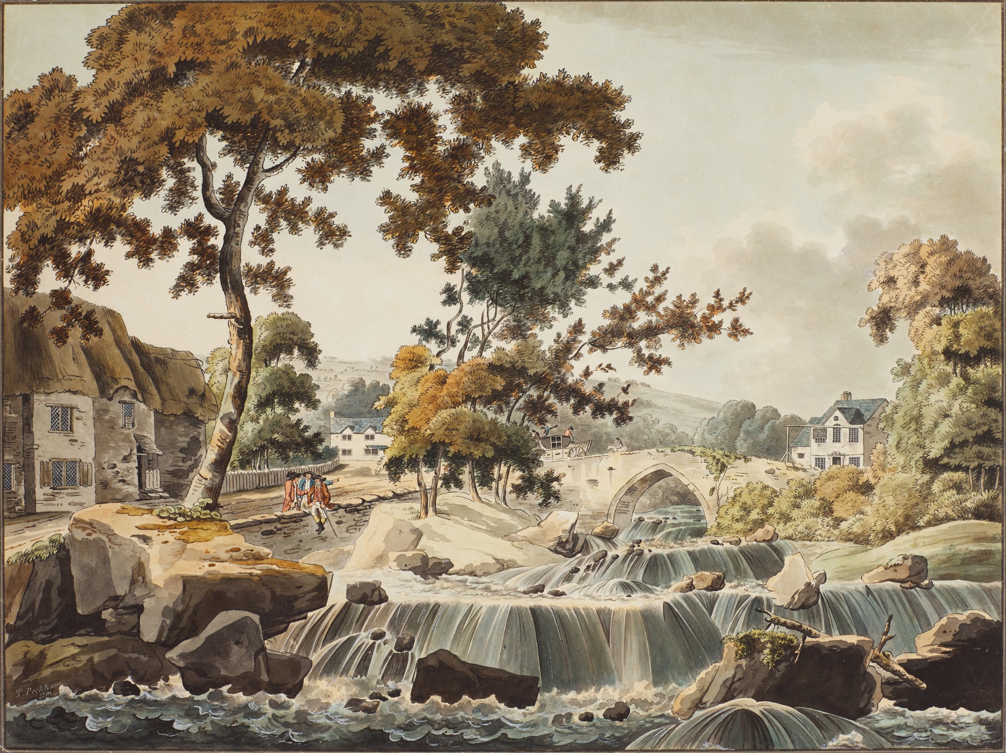 | Elegant figures resting by a river, possibly Ivy Bridge, Devon | |