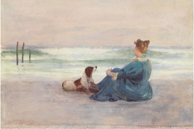 MRS. ANSHUTZ AND DOG AT HOLLY BEACH