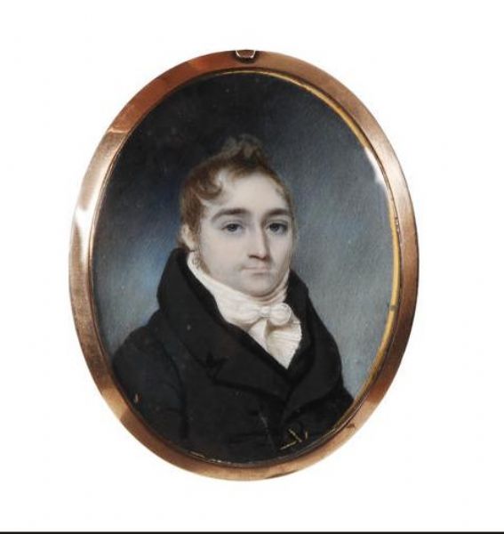Portrait miniature of a gentleman wearing a dark jacket and white stock, oval