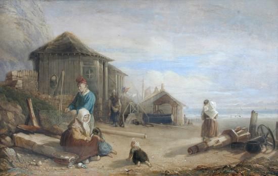 Fisherfolk on the sea shore