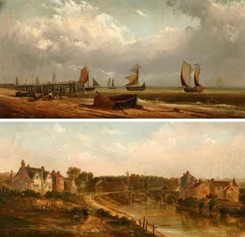 | Beach Scene with Figures by a Jetty (possibly Yarmouth) and Bishops Bridge, Norwich | |