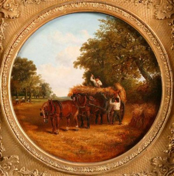 Figures Loading the Hay Cart, further Figures Reaping the Corn in the Distance,