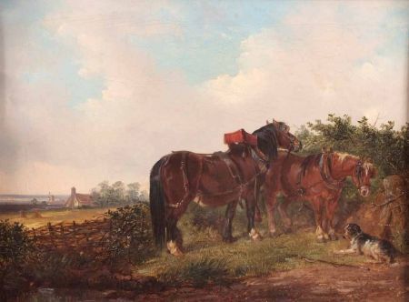 Two Workhorses and Dog in a Suffolk Landscape