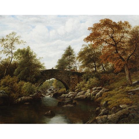 CATTLE DROVER CROSSING A STONE BRIDGE