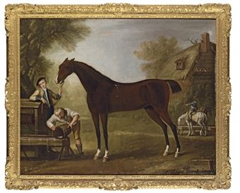 | Flying Childers held by a groom, with other figures, in a landscape with a cottage beyond | |