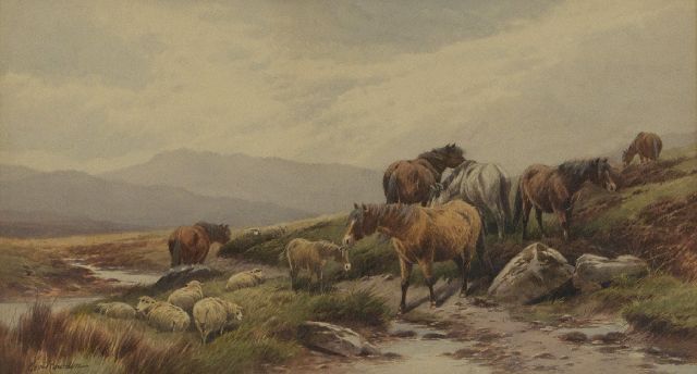 Ponies and Sheep by the Stream