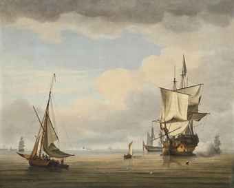 | A Royal Navy three-decker announcing her departure from the anchorage at Spithead | |