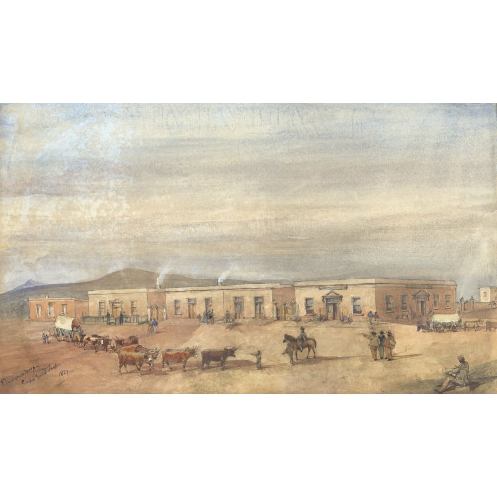 55 by 68 by 3,5cm including frame; inscribed with the title; inscribed 'The Burghersdorp | |