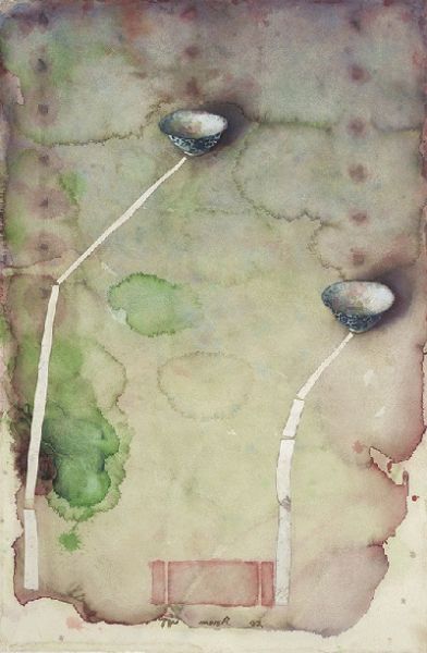 Watercolor gouache and ink on paper