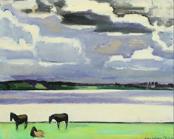 | Landscape with horses by a fiord, presumably from Marbæk by Roskilde Fiord | |