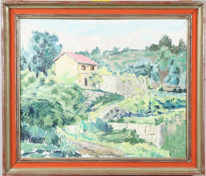 Provencalskt landskap med hus, olja på duk
