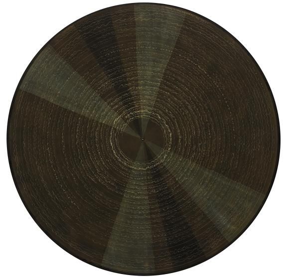 Ink shellac on paper mounted on wooden board